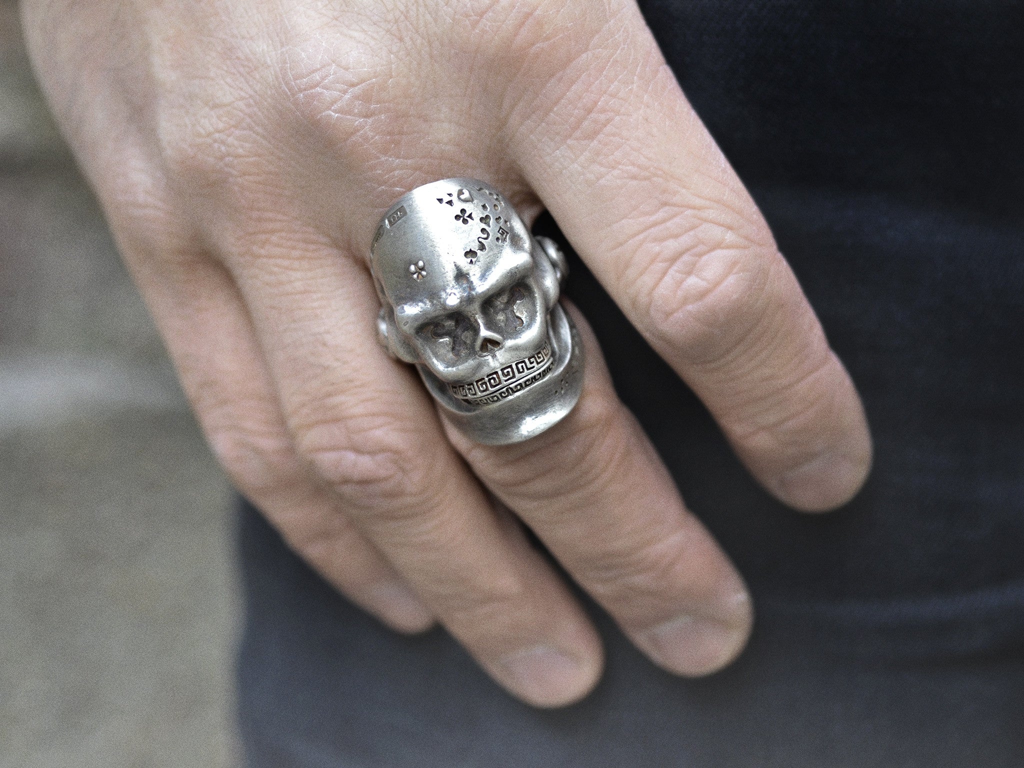 Anello teschio con mascella incernierata in argento